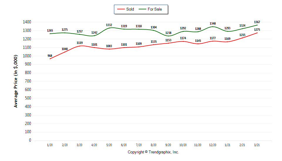 Alameda: $968,000 / $1.275,000 – Average appreciation of $ 307,000 – Peaking at $ 1,275,000 in March of 2021.