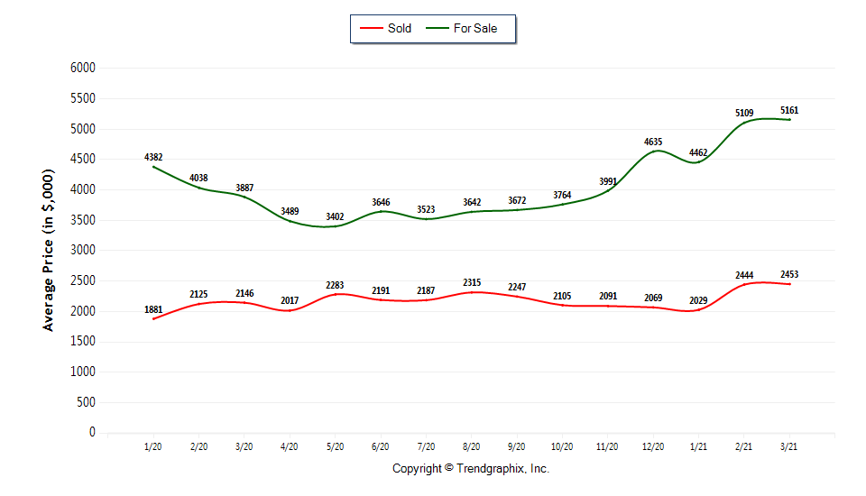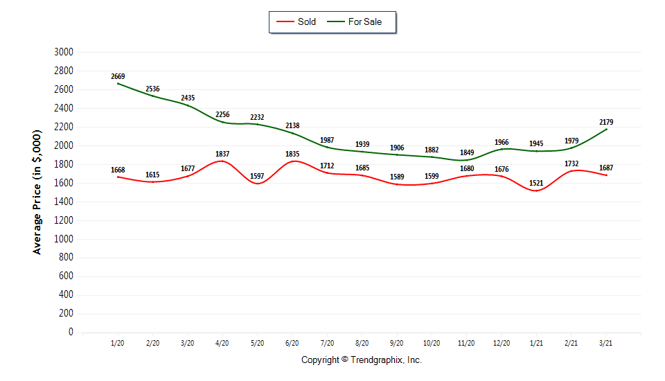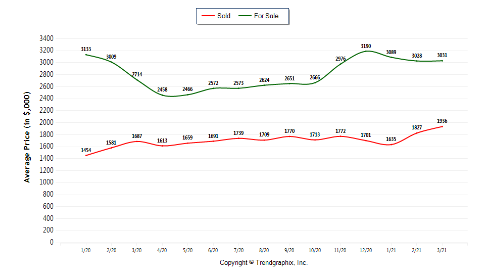 San Mateo: $ 1,881,000 / $2,453,000 – Average appreciation of $572,000 – Peaking at $2,453,000 in March of 2021.