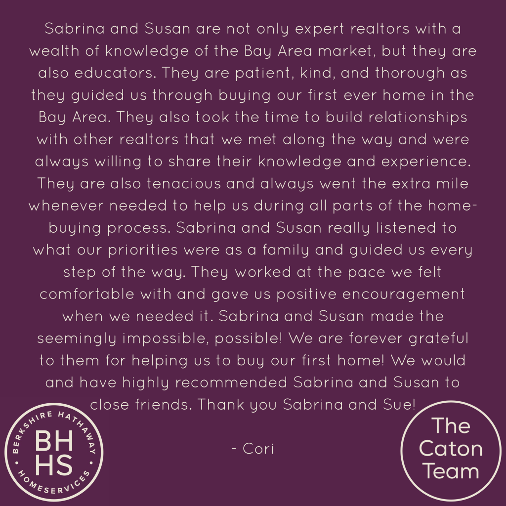 If you’re considering a sale or purchase of Real Estate in the Bay Area – you need a full-time, professional Realtor to guide you. The Caton Team would love to interview for the job as your Realtor Team – please reach out at your convenience.