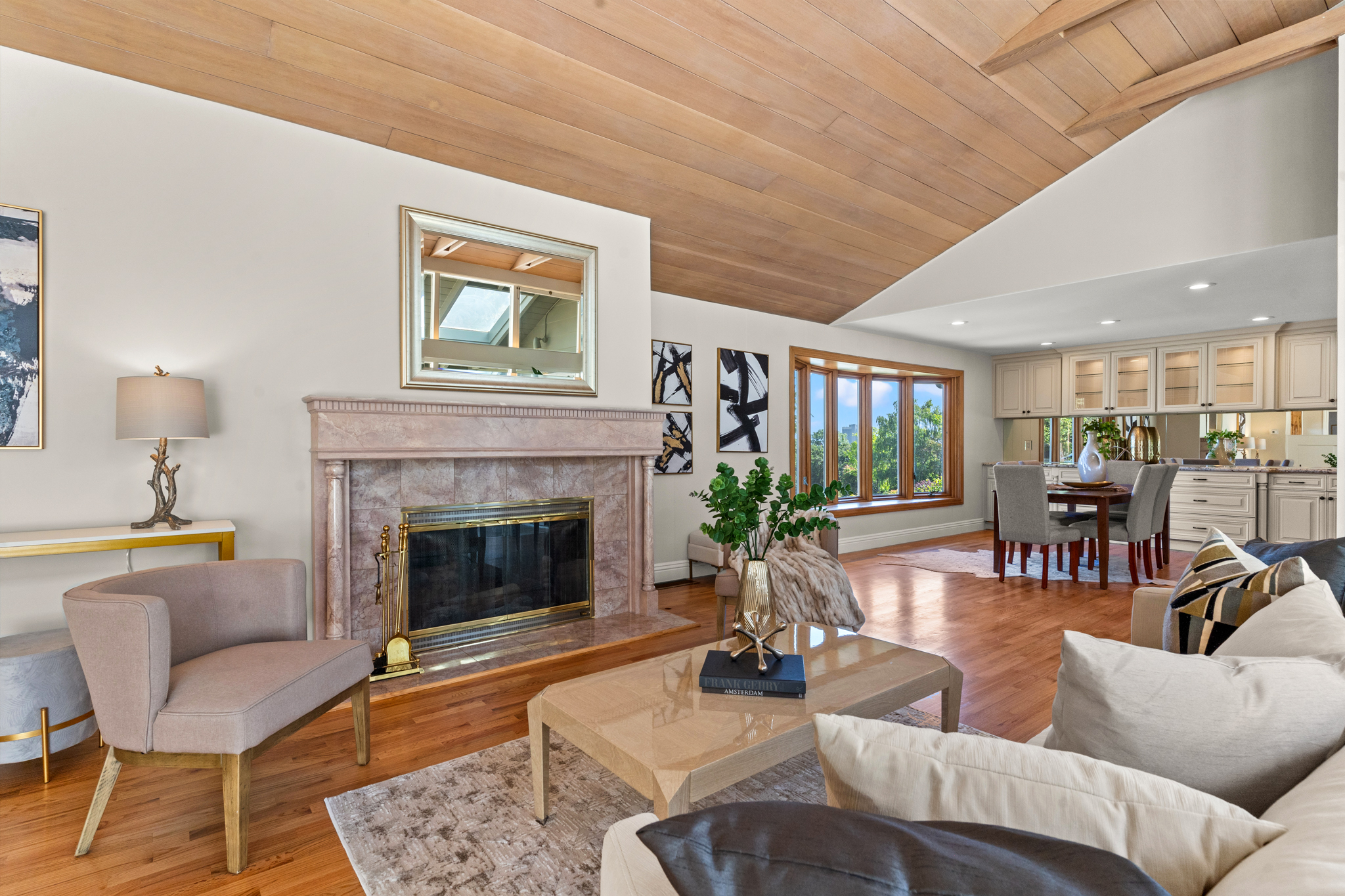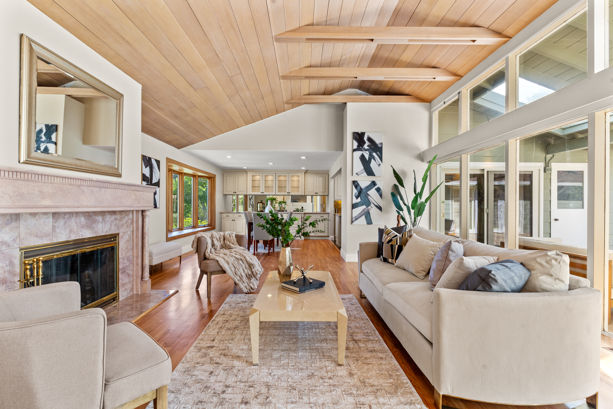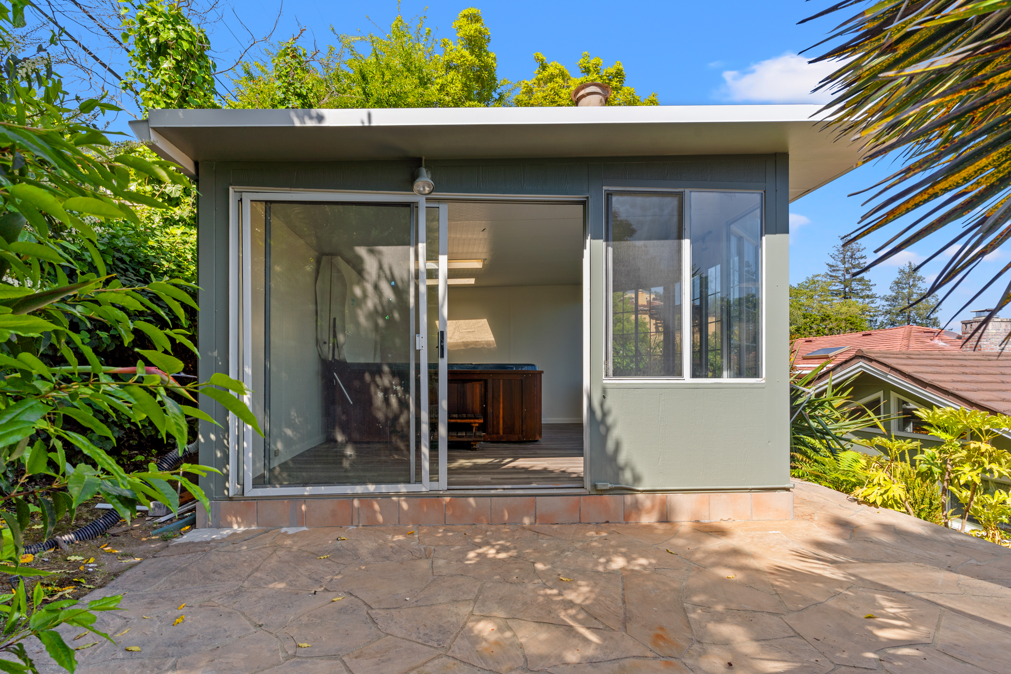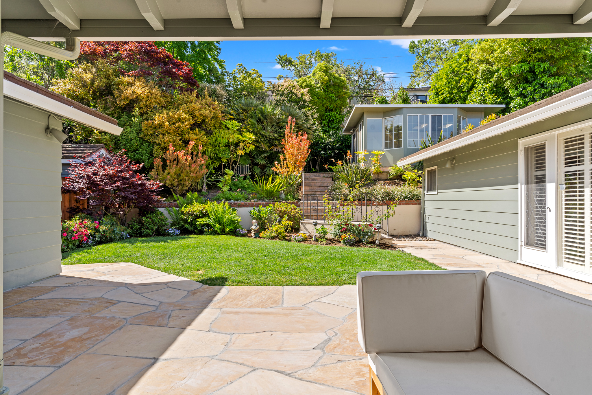 Welcome to 445 Parrott Drive in sought after Baywood Knolls. This lovingly maintained home has beautiful refinished hardwood floors throughout and has been freshly painted both inside and out. Featuring 4 bedrooms and 3 full baths, the inviting floor plan surrounds a beautiful stone patio and yard. Feel the spaciousness of the vaulted open beam ceiling and floor to ceiling windows of the living room. Enjoy entertaining in the formal dining room with bay window and custom built-in cabinetry. The primary bedroom with open beam ceiling includes a walk-in closet, bath with large tub, stall shower and dual sinks. A shared bath adjoins two of the additional bedrooms. The fourth bedroom and 3rd bath are opposite the bedroom wing and off the kitchen area. The updated kitchen with breakfast space features high-end cabinetry, stainless steel appliances, granite counters and large island with sink and built in microwave. A laundry closet with stack washer/dryer finishes the kitchen area. Enjoy the serenity of the lovely rear yard with stone patio, lawn and mature landscaping. Stairs lead up the elevated hillside to the cabana with hot tub. Convenient to downtown San Mateo, Caltrain, and Highways 92, 280 and 101. Welcome home.
