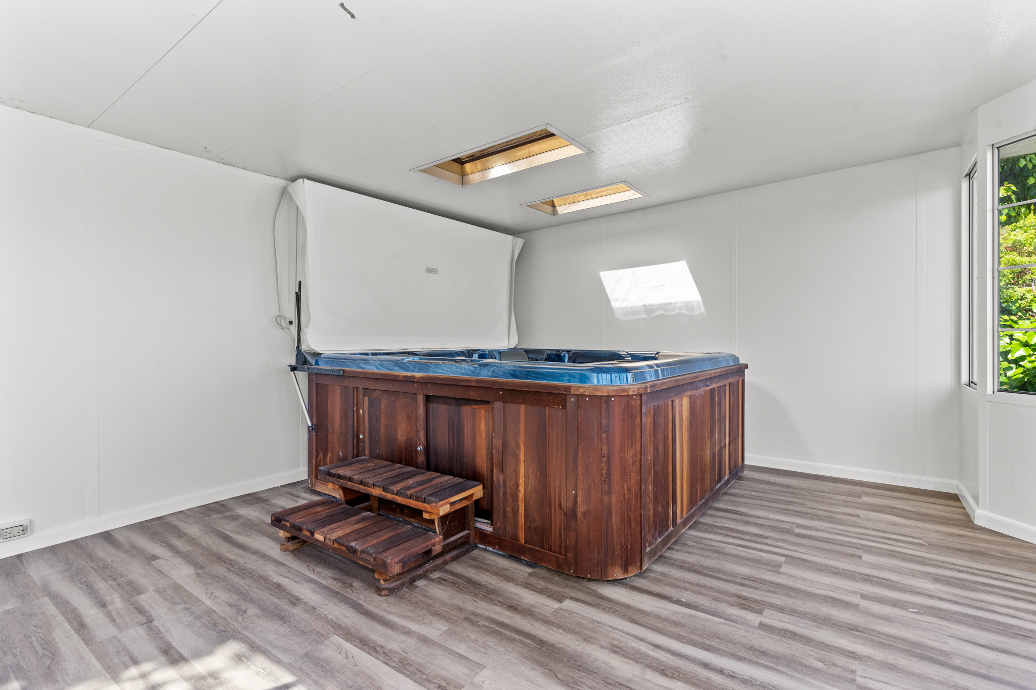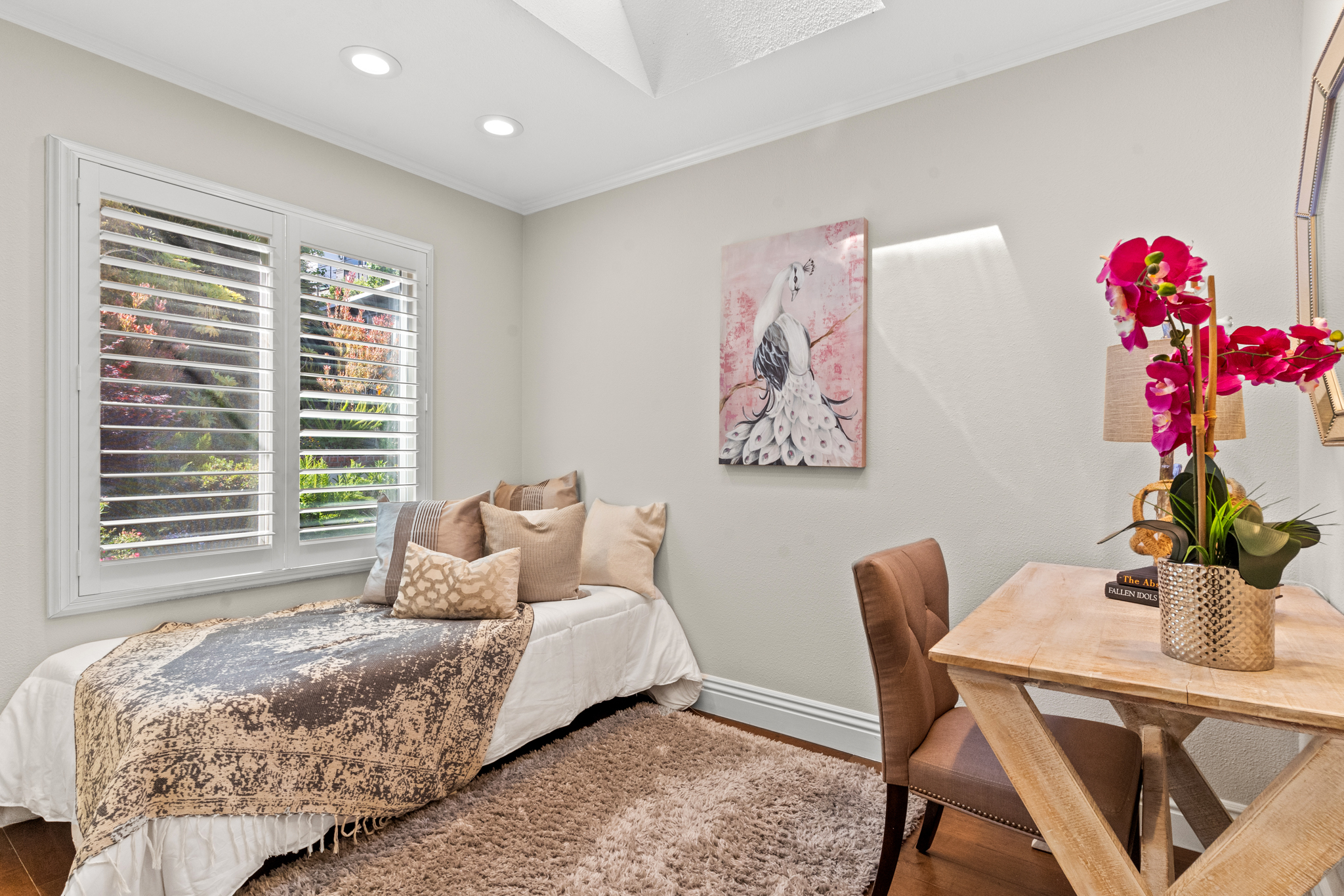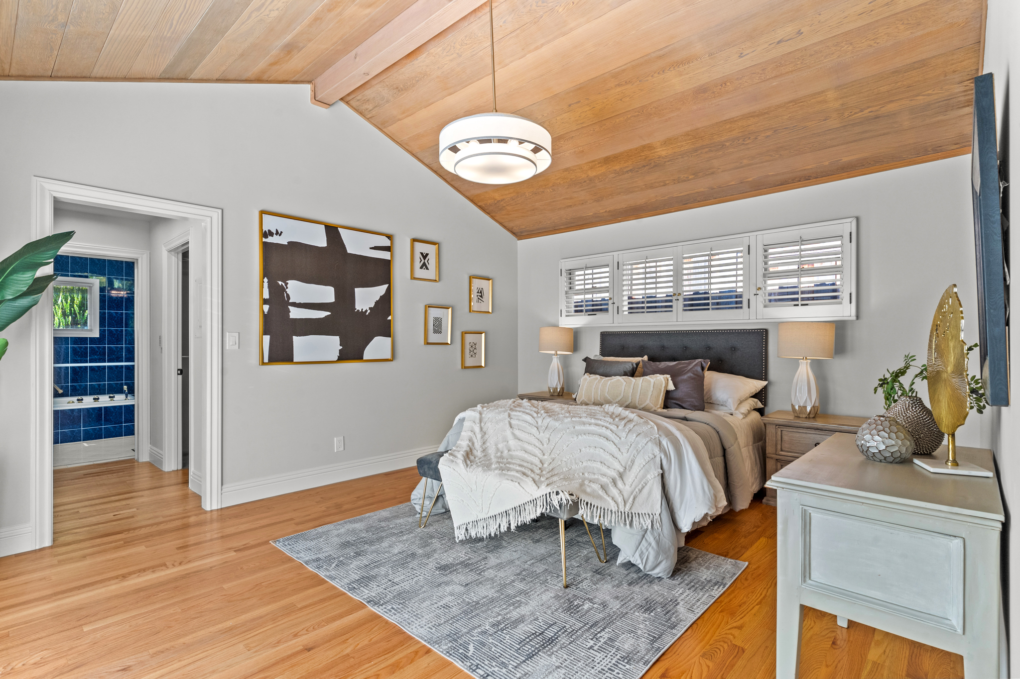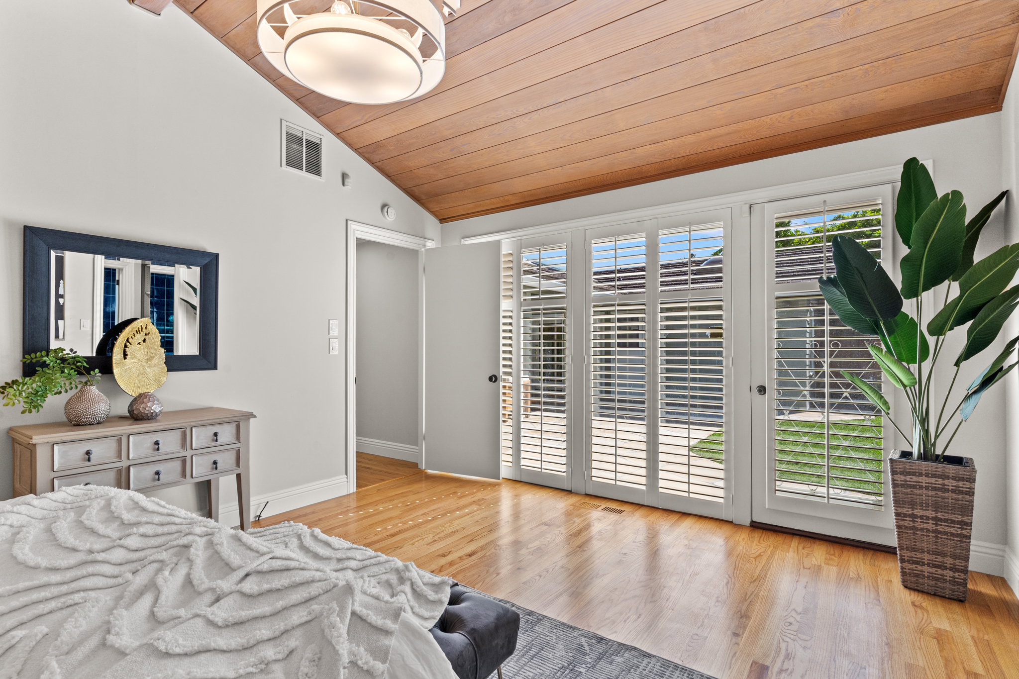 Welcome to 445 Parrott Drive in sought after Baywood Knolls. This lovingly maintained home has beautiful refinished hardwood floors throughout and has been freshly painted both inside and out. Featuring 4 bedrooms and 3 full baths, the inviting floor plan surrounds a beautiful stone patio and yard. Feel the spaciousness of the vaulted open beam ceiling and floor to ceiling windows of the living room. Enjoy entertaining in the formal dining room with bay window and custom built-in cabinetry. The primary bedroom with open beam ceiling includes a walk-in closet, bath with large tub, stall shower and dual sinks. A shared bath adjoins two of the additional bedrooms. The fourth bedroom and 3rd bath are opposite the bedroom wing and off the kitchen area. The updated kitchen with breakfast space features high-end cabinetry, stainless steel appliances, granite counters and large island with sink and built in microwave. A laundry closet with stack washer/dryer finishes the kitchen area. Enjoy the serenity of the lovely rear yard with stone patio, lawn and mature landscaping. Stairs lead up the elevated hillside to the cabana with hot tub. Convenient to downtown San Mateo, Caltrain, and Highways 92, 280 and 101. Welcome home.