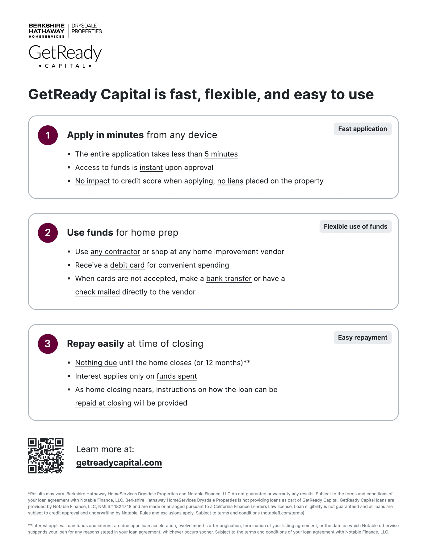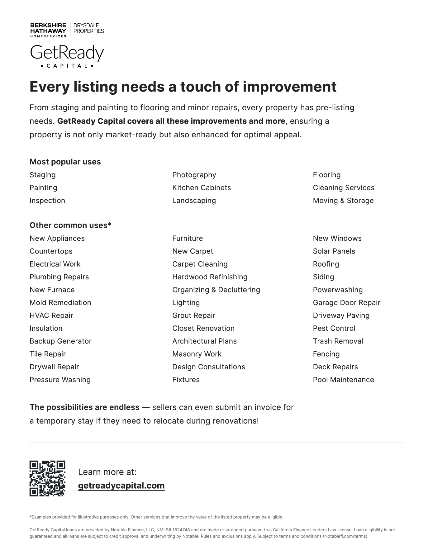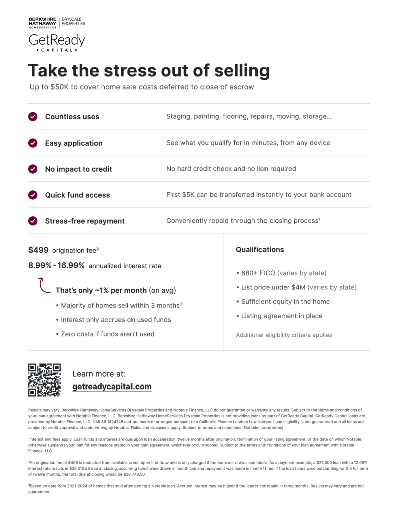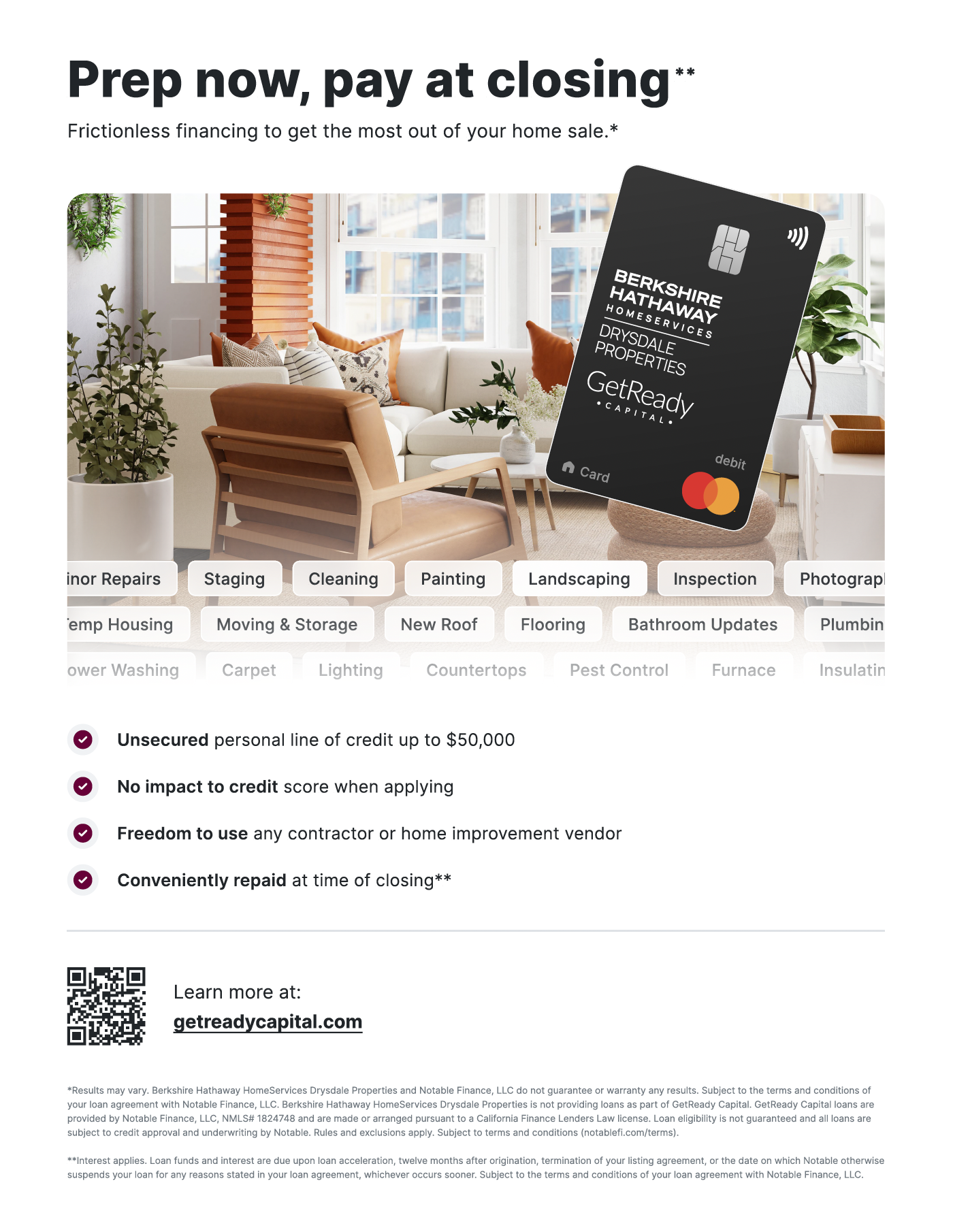 Fund are available quickly. Flexible vendor options, flexible on what a seller spends their funds on, no vendor platform markups. We’d love to sit down with you and discuss how Get Ready Capital can help you sell your home! CONTACT THE CATON TEAM FOR FURTHER DETAILS | Call | Text 650.799.4333 | Email | Info@TheCatonTeam.com