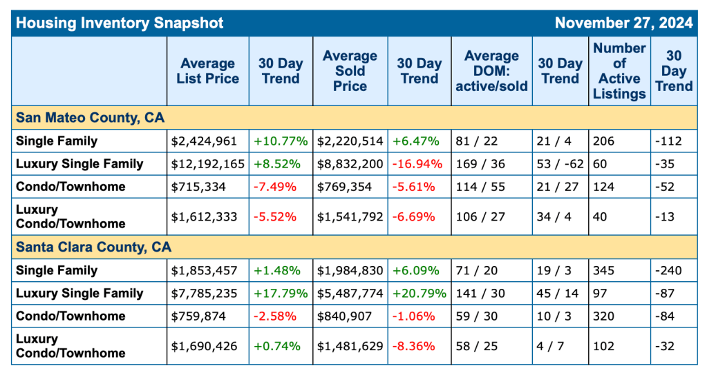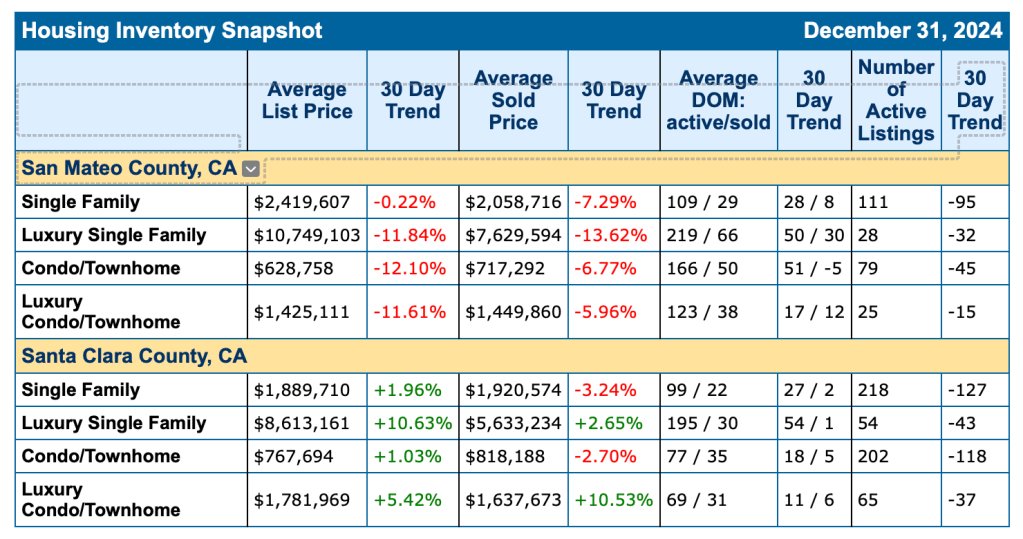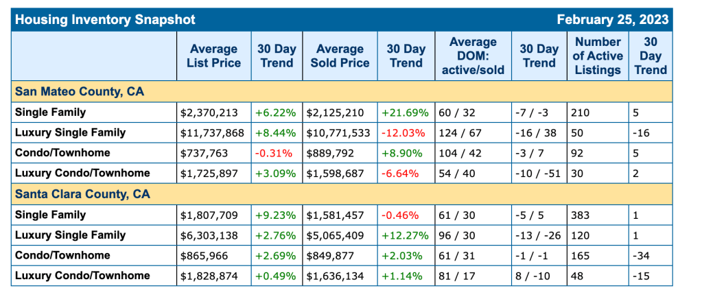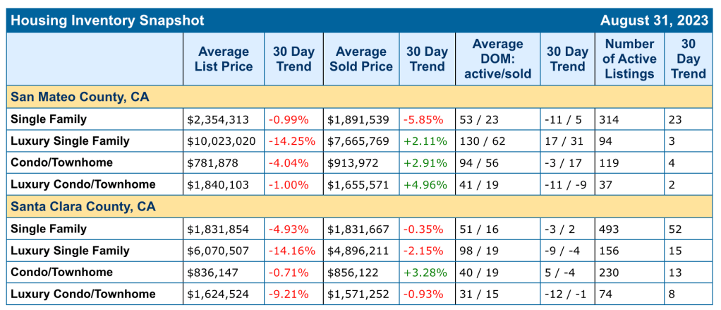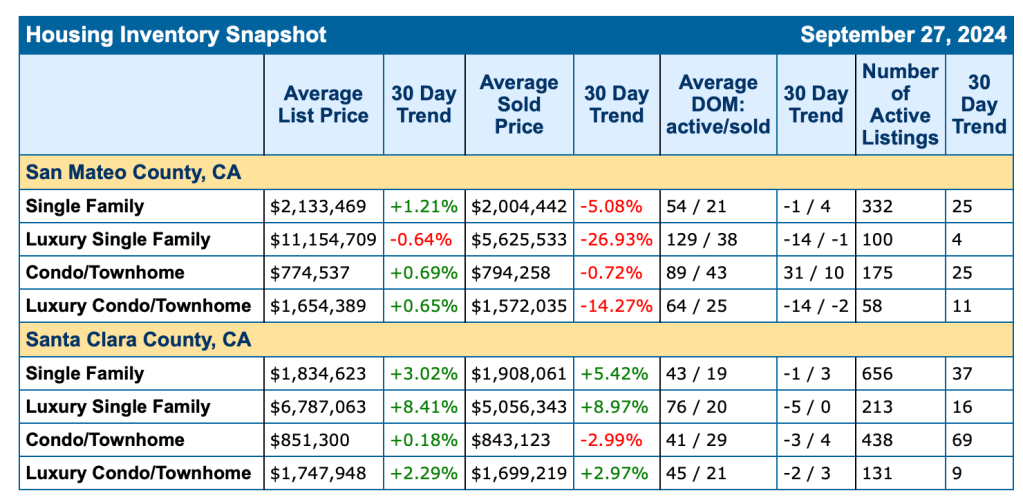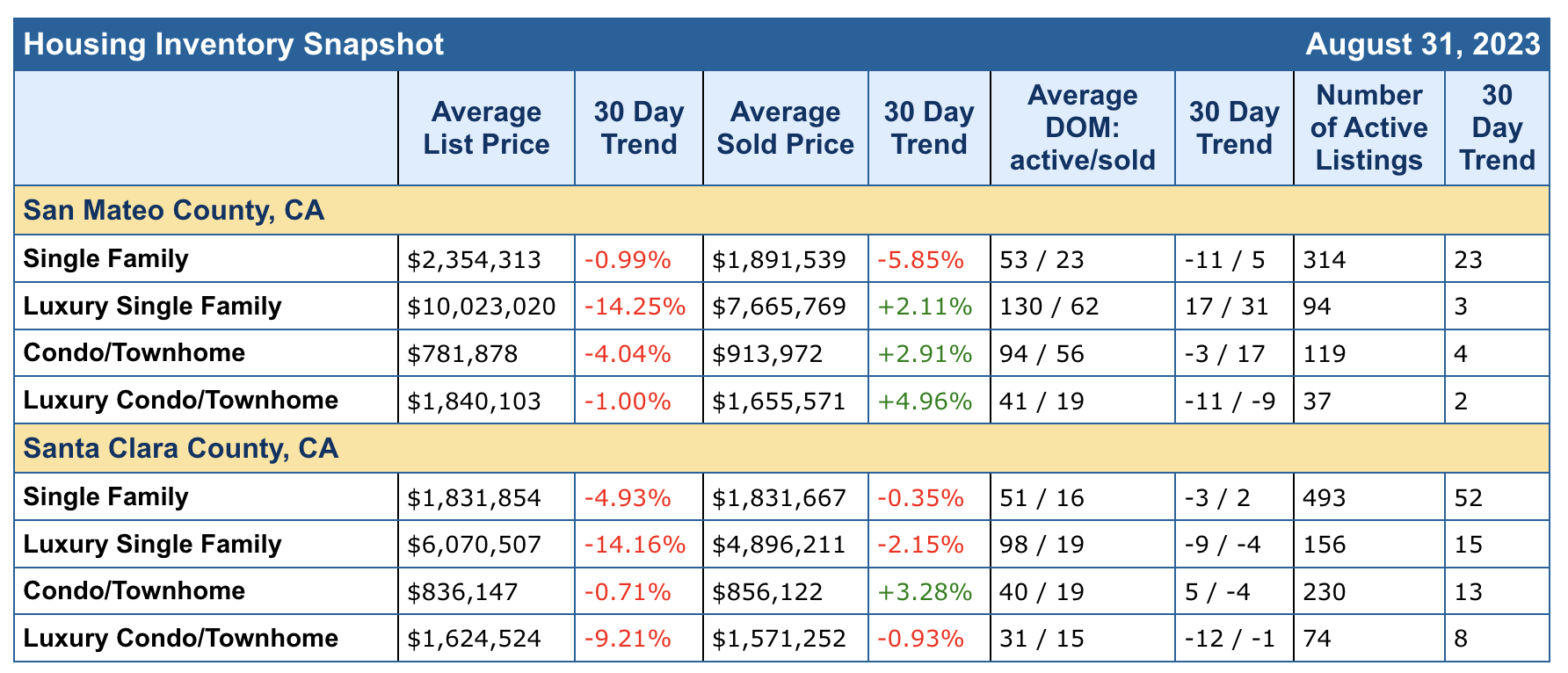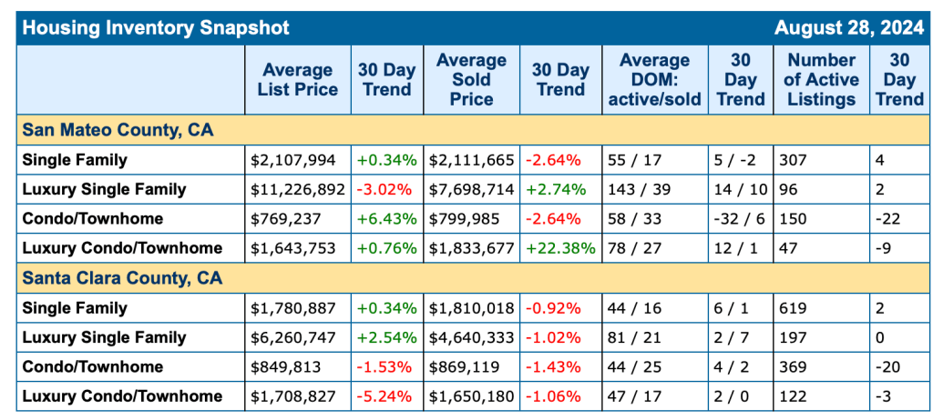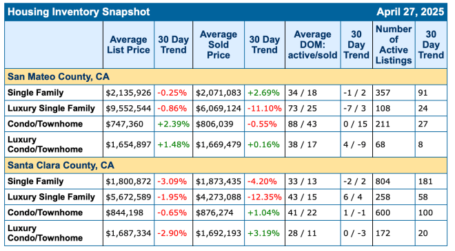 The stats are in for July 2025. The last 30 days reflect a softening of the market with values adjusting down. This is part of the normal summer slowdown as folks are off on vacation before summer ends. However, this whole year hits different from the year past. Job changes, market insecurity, and tariffs have many people on the fence about their next move, and who can blame them? However, in my gut, I know this: if you want to live and stay in the Bay Area, the best time to buy is during a weird market. Why, you ask? Well, in our “normal” market, which is characterized by low inventory and high demand, most buyers face multiple offers and often experience huge overbidding. When the market is weird, when other buyers are on the fence, we see opportunity. A home can only be sold once, so when multiple bids are the norm, folks get priced out pretty quickly. This year, not a day goes by that I don’t see a price adjustment down, meaning there is a gap between what sellers want/expect and what buyers can afford. Those interest rates changed things.