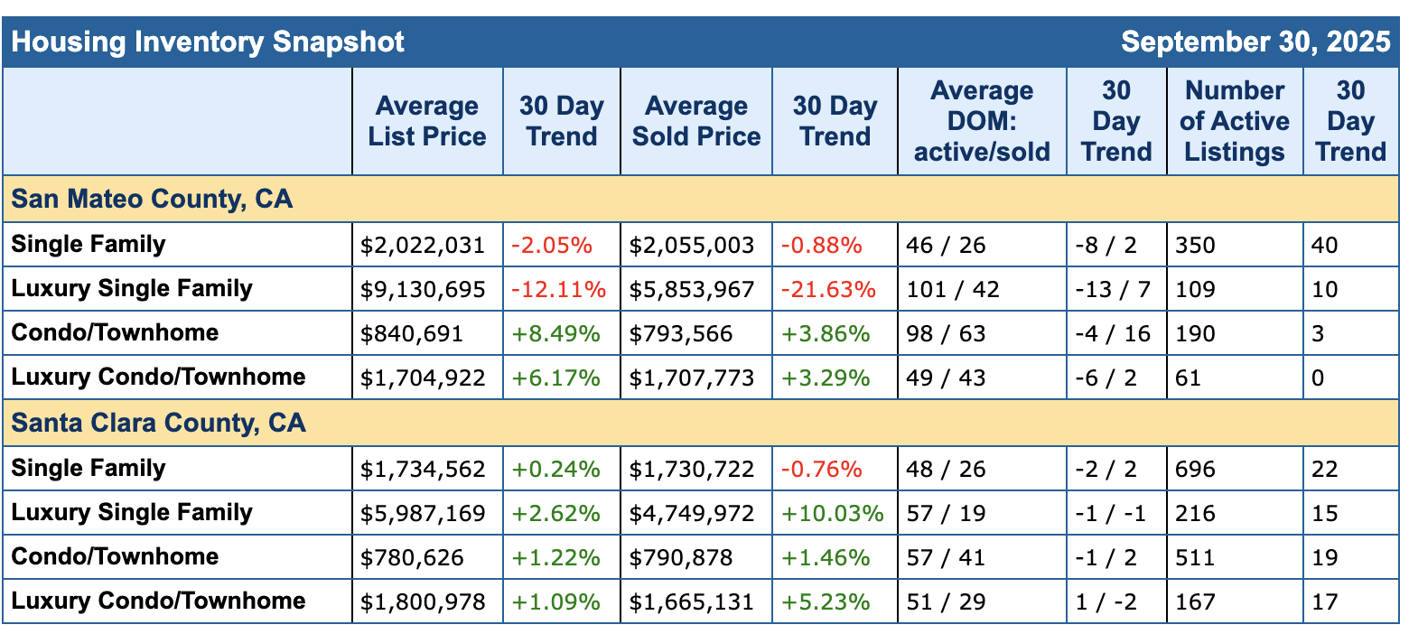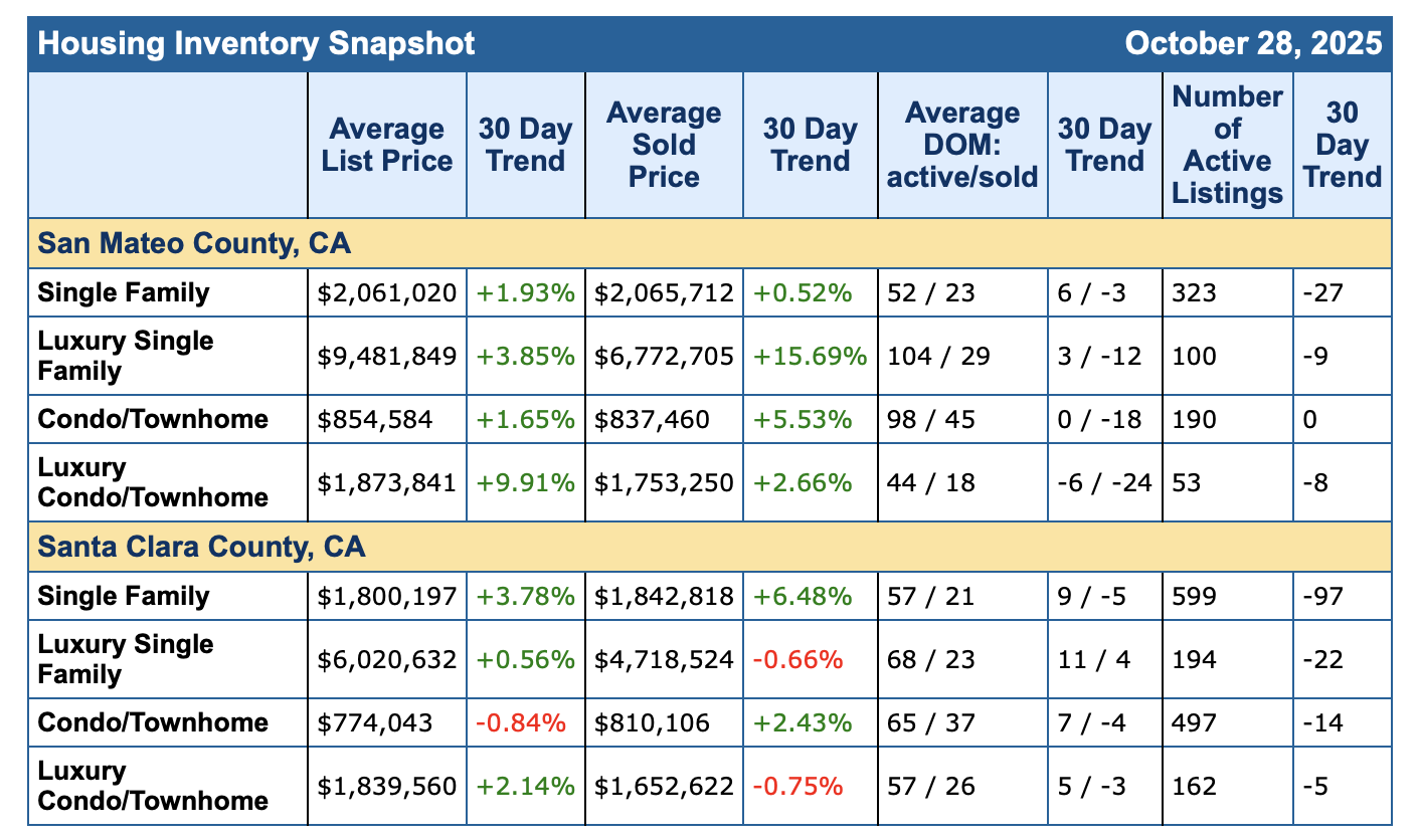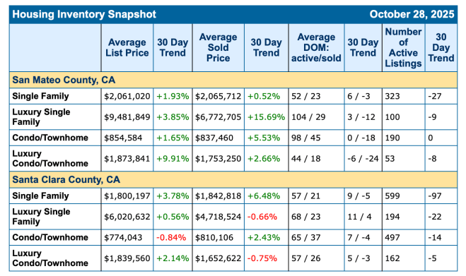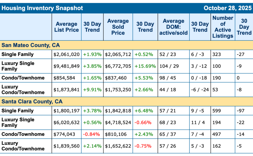 The stats are in for September and October 2025. Where September showed some price adjustments down in the single family home sector – for October we are seeing growth. That dip in interest rates sure helped. Going from around 7% to 6% and then some down to the 5% level, gave buyers some breathing room and opportunity to act.