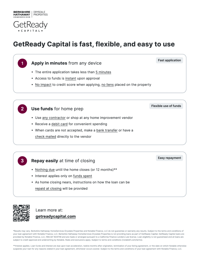 GET READY CAPITAL. A great loan option for sellers to help prepare their home for sale – Ask The Caton Team How!