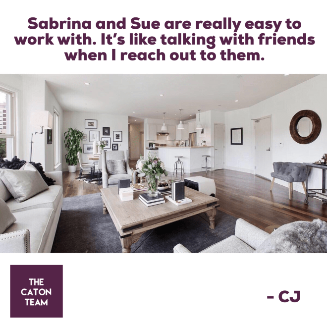 “I recently worked with The Caton team (Sabrina and Sue) to purchase my first home. I was referred to the team by a co-worker who had just purchased a condo with them. He had a great experience, and recommended them for their honesty, responsiveness and availability (even at night and weekends). I found this assessment to be 100% true.