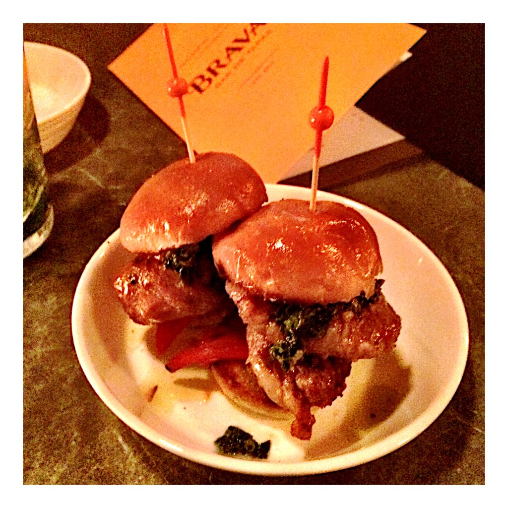 I love tapas, little plates of goodness and a nice cocktail. Well, Bravas offered this and so much more. Nestled in a craftsman home converted into this restaurant – I instantly loved the décor and mixed home and bar feel. It was like hanging out in your friends really cool home. With a bar at the center, an awesome remodel of modern mixed with rustic. I truly enjoyed it the moment we walked in.