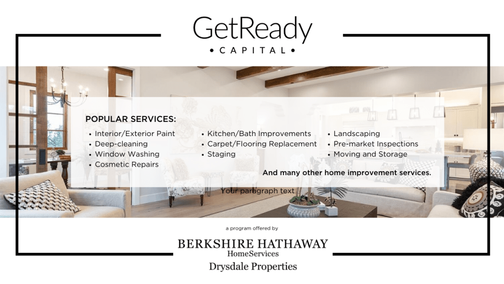 Fund are available quickly. Flexible vendor options, flexible on what a seller spends their funds on, no vendor platform markups. We’d love to sit down with you and discuss how Get Ready Capital can help you sell your home! CONTACT THE CATON TEAM FOR FURTHER DETAILS | Call | Text 650.799.4333 | Email | Info@TheCatonTeam.com